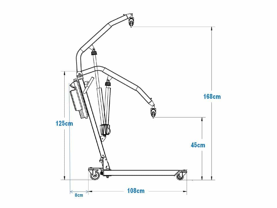 - Forflytning fra gulv: Løftehøjde fra 45 cm op til 168 cm – ideel ved fald eller pleje